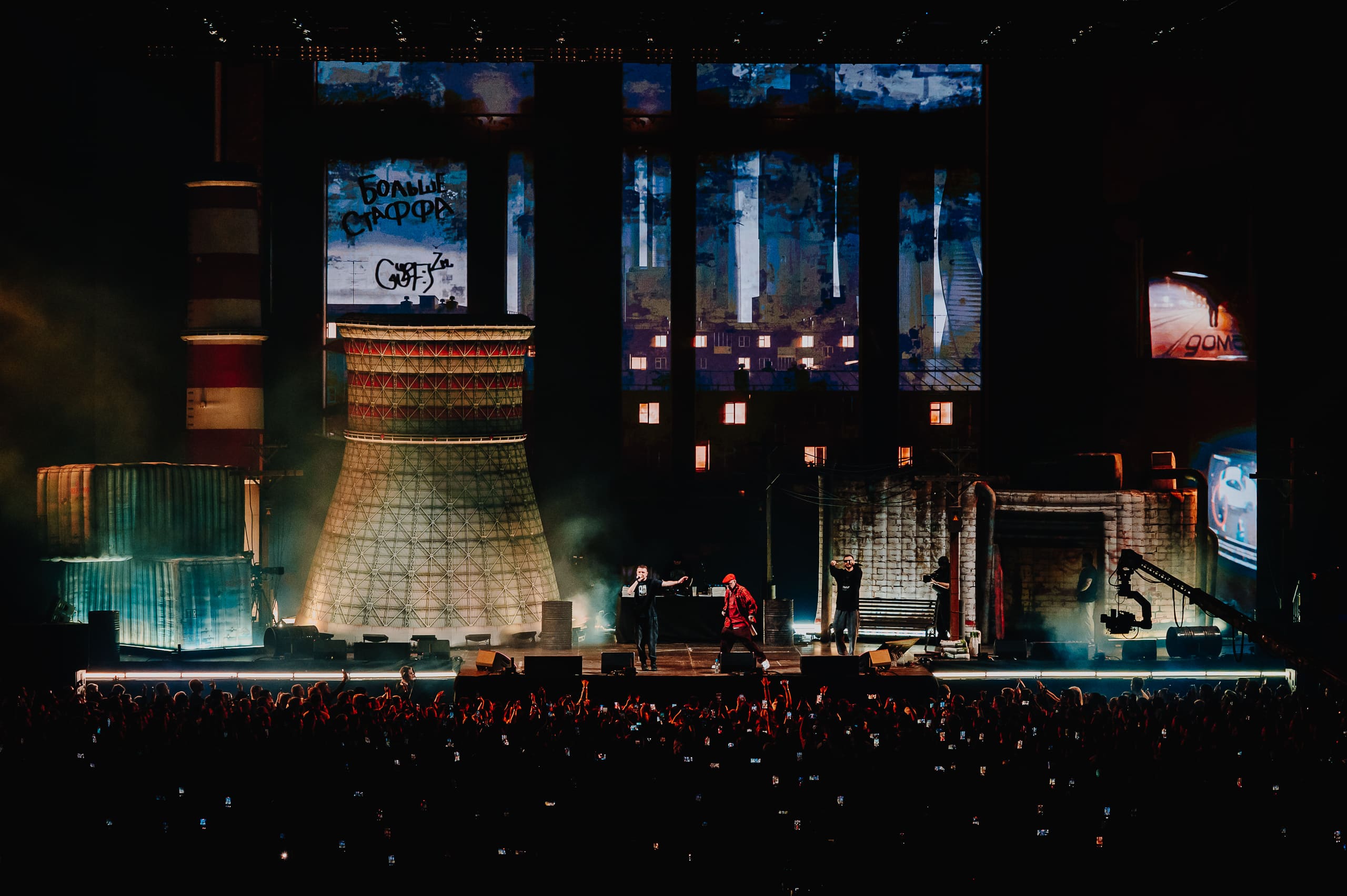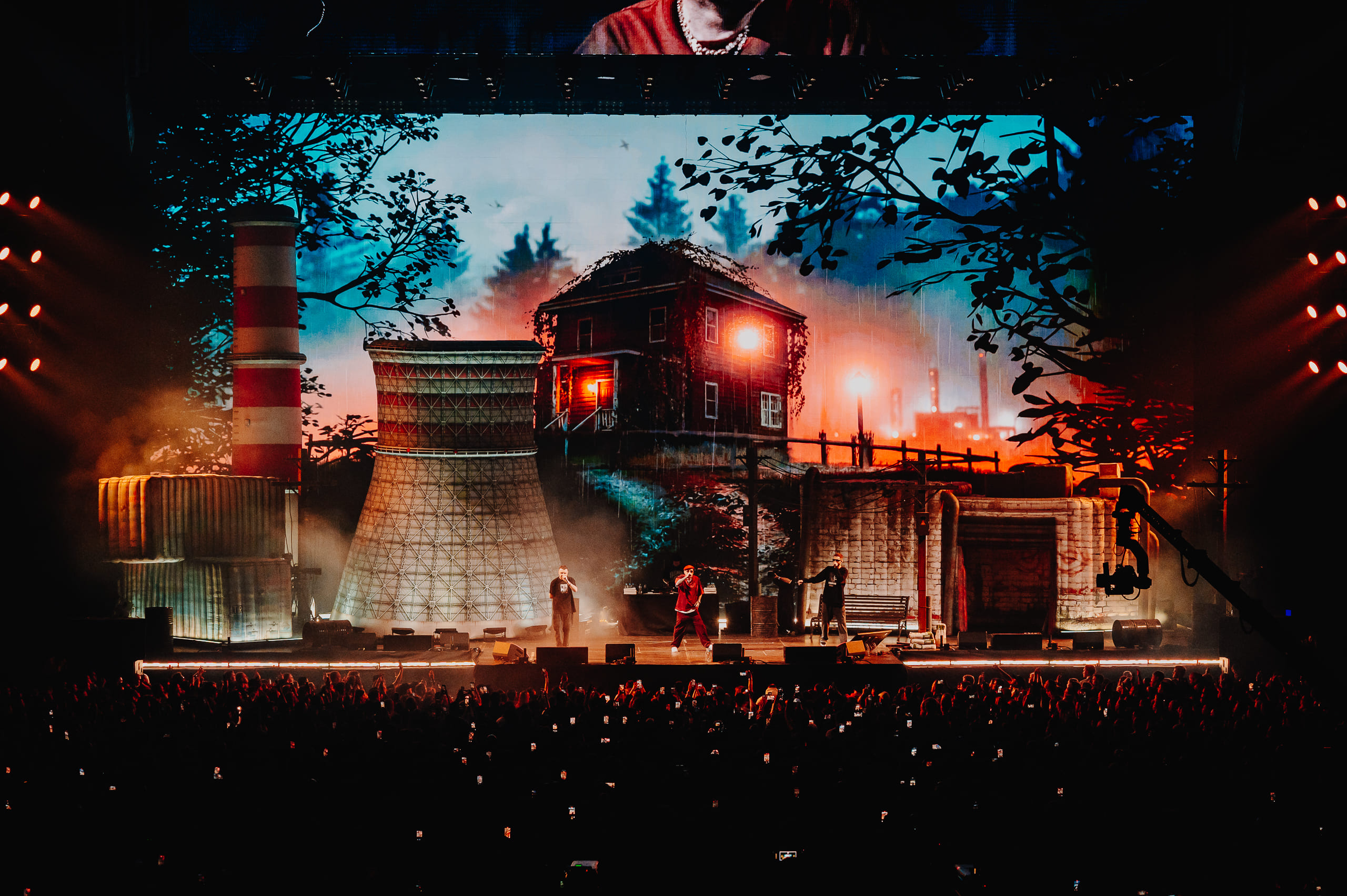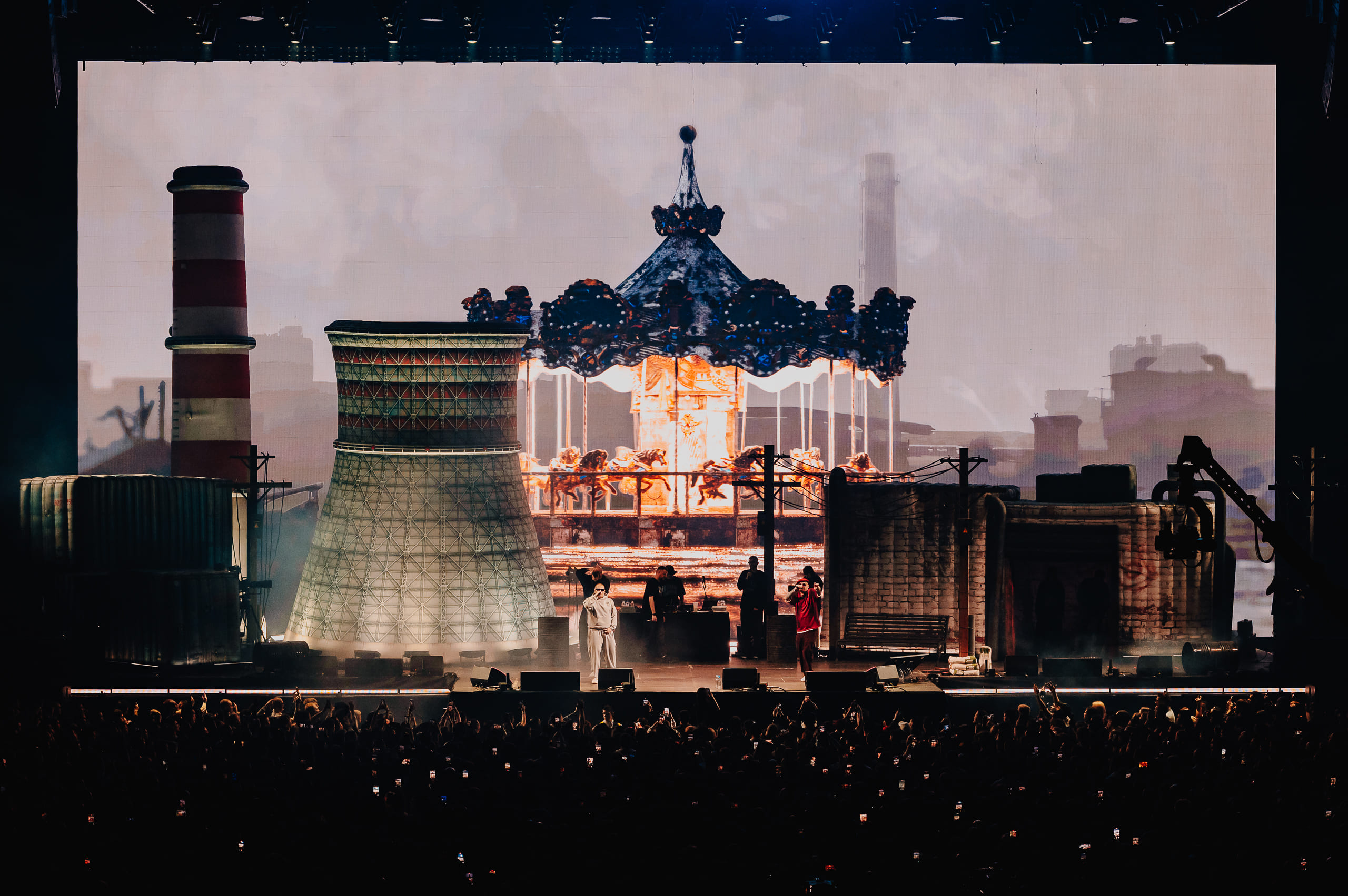 Разработать контент и сценический дизайн, с эффектом дополнения декораций в виде промышленной зоны