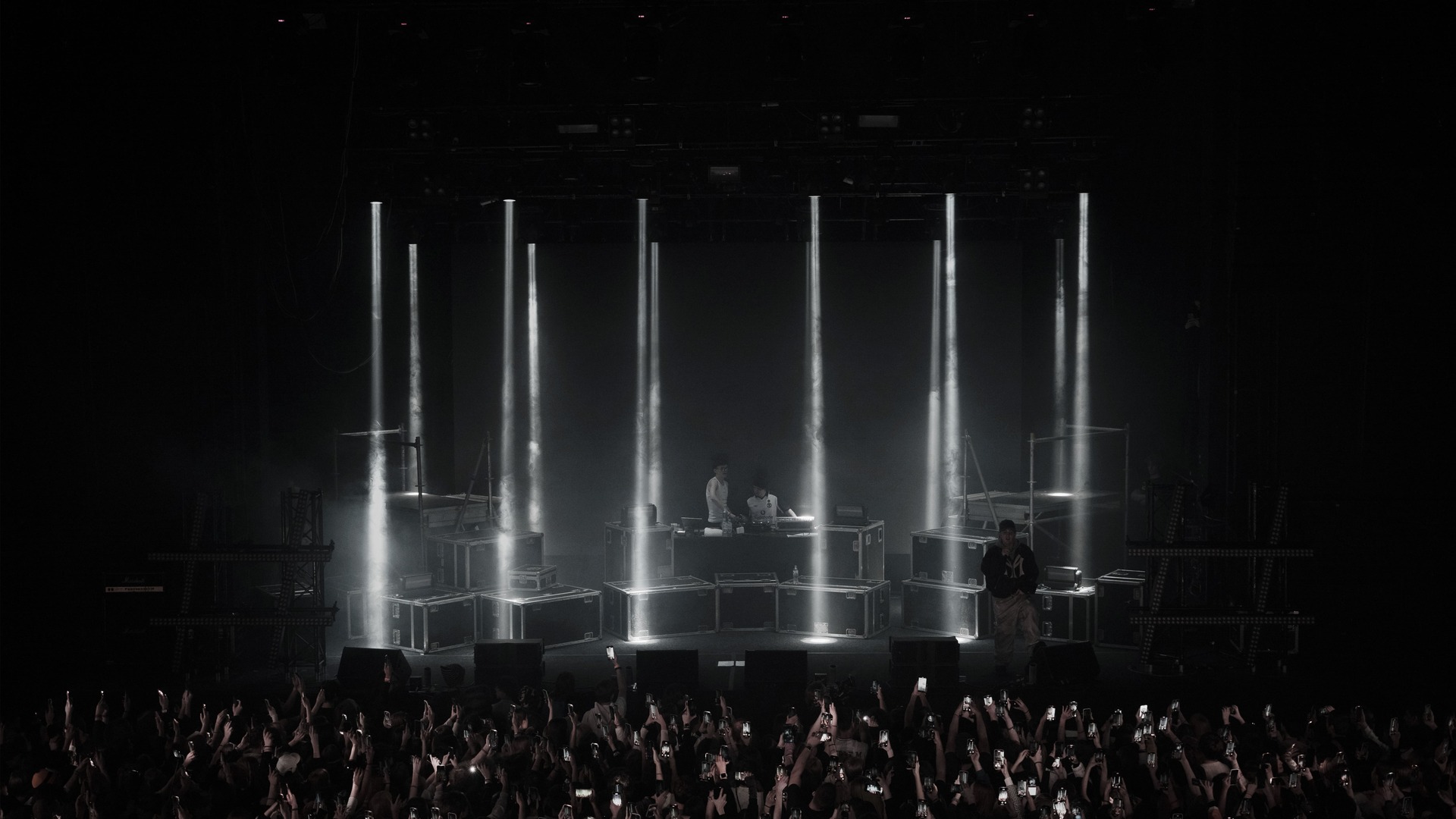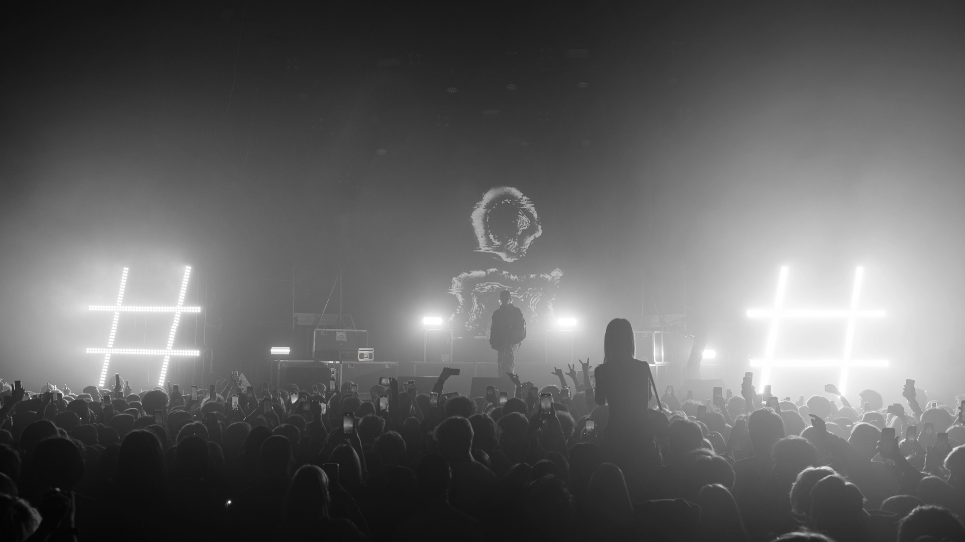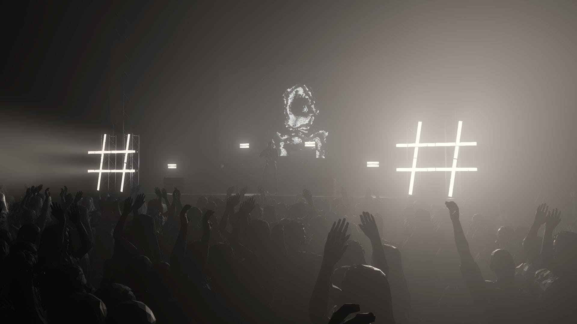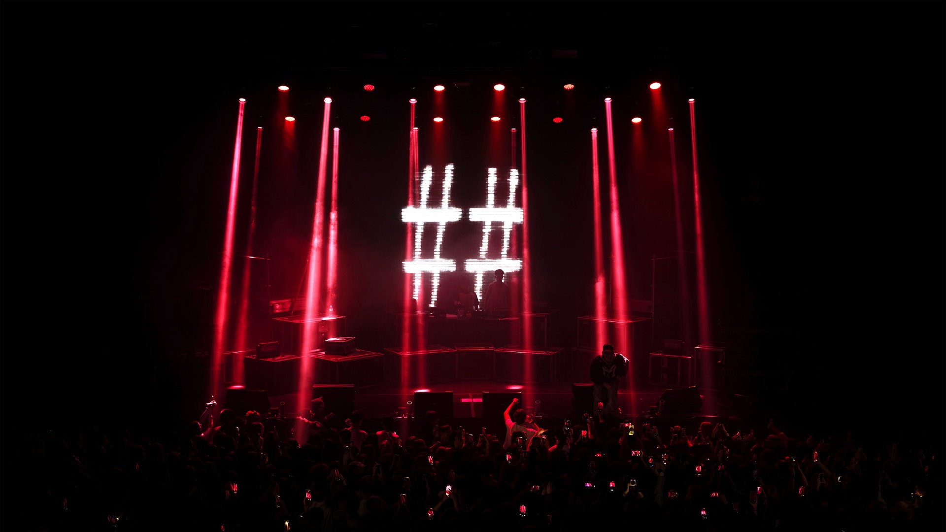 Необходимо было разработать сценический дизайн, который отражает актуальный стиль артиста. Световыми приборами создать акцент на выступлении, выделяя артиста на фоне плотного тумана, множества кейсов и характерных хэштегов. Усилить новым визуальным контентом восприятие света, дополняя его и превращая в дополнительный световой прибор в самые яркие моменты шоу.